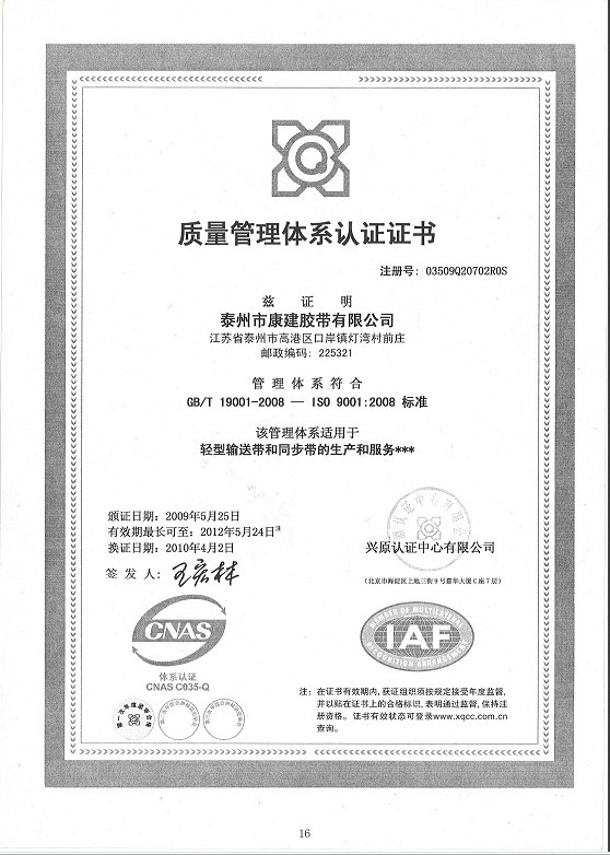 “康建”產(chǎn)品已通過(guò)ISO9001國(guó)際質(zhì)量體系認(rèn)證